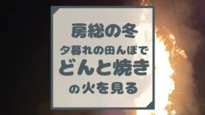 房総の冬、夕暮れの田んぼで「どんと焼き」の火を見る